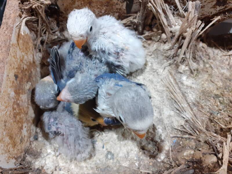C'est toujours mignon de voir à quoi ressemblent les petits oisillons en nichées. Chaque nichée apporte sont lot de surprises à l'apparition des premières plumes. Selon les mutations cachées portées par les parents, les oisillons sont souvent totalement différents des couleurs des parents. Je partage ici avec vous, différents clichés de nichées pris depuis mes débuts dans l'élevage d'inséparables ... et quelques nids bien garnis en oeufs ...